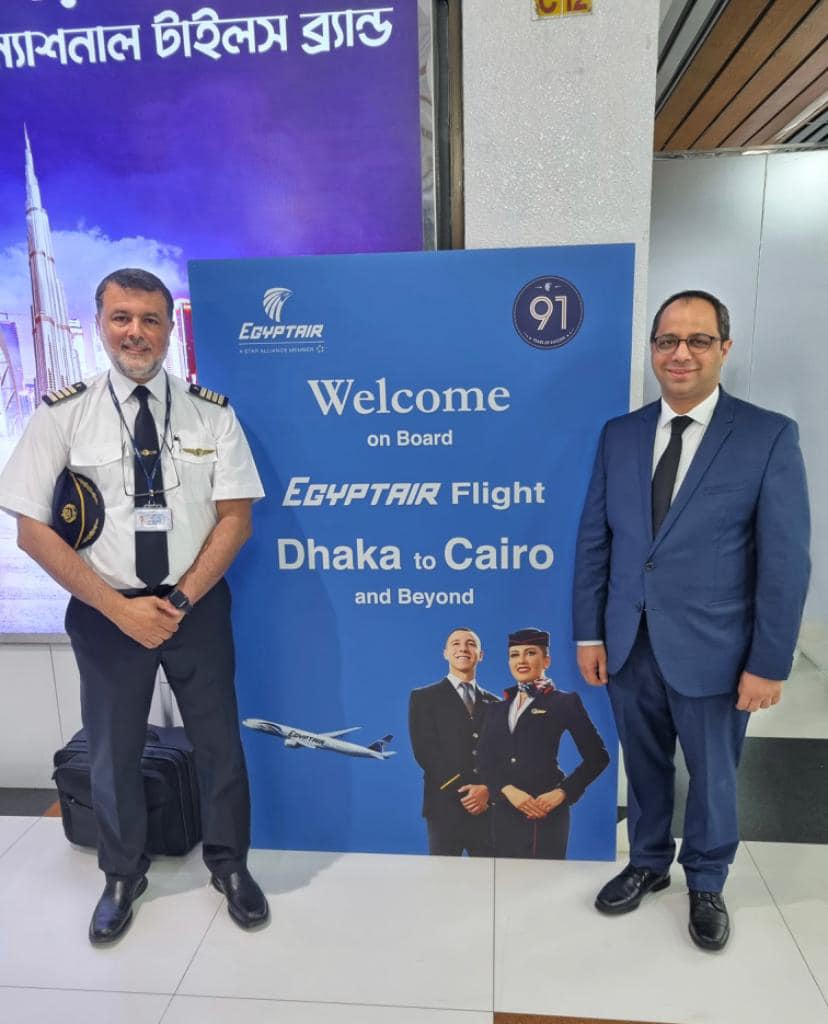 شارك سكرتير ثاني مينا مكاري القائم بالأعمال بالإنابة بسفارة جمهورية مصر العربية في دكا، والطيار إيهاب الطحطاوى رئيس مجلس إدارة شركة مصر للطيران للخطوط، في تدشين خط مصر للطيران المباشر بين القاهرة ودكا بمعدل رحلتين أسبوعيًا.